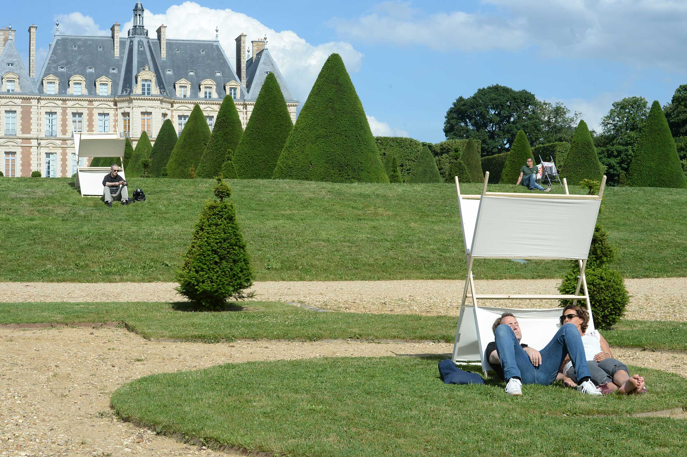 Le parc de Sceaux est un jardin à la française présentant quatre niveaux de pentes douces. Soulignant et mettant à profit l’inclinaison des terrains, L’Abritation est une installation permettant aux promeneurs du parc